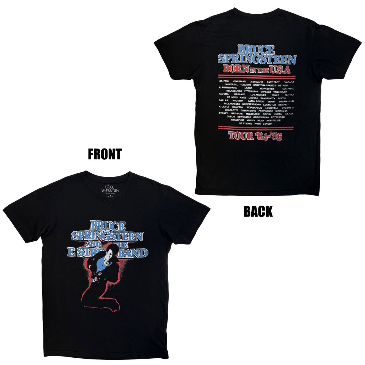 【BRUCE SPRINGSTEEN 】ロックTシャツ メンズ バンドTシャツ メンズ BRUCE SPRINGSTEEN & E STREET BAND Born In The USA Tour 1984’85 Premium Soft Touch Black 厚手 プレミアム コットン ブルース・スプリングスティーン ツアー バンドTシャツ S/M/L/XL/XXL