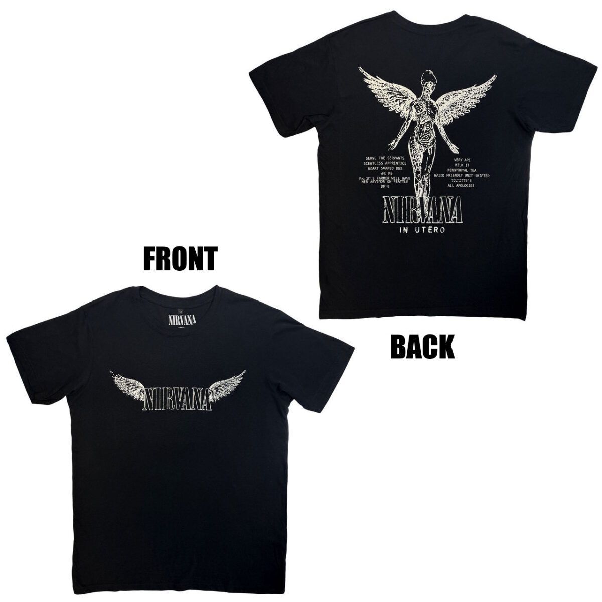 【NIRVANA】1993年にリリースされたアルバムIn Utero トラックリスト デザイン入りTeeです。プレミアム綿100%、柔らかで厚めです。